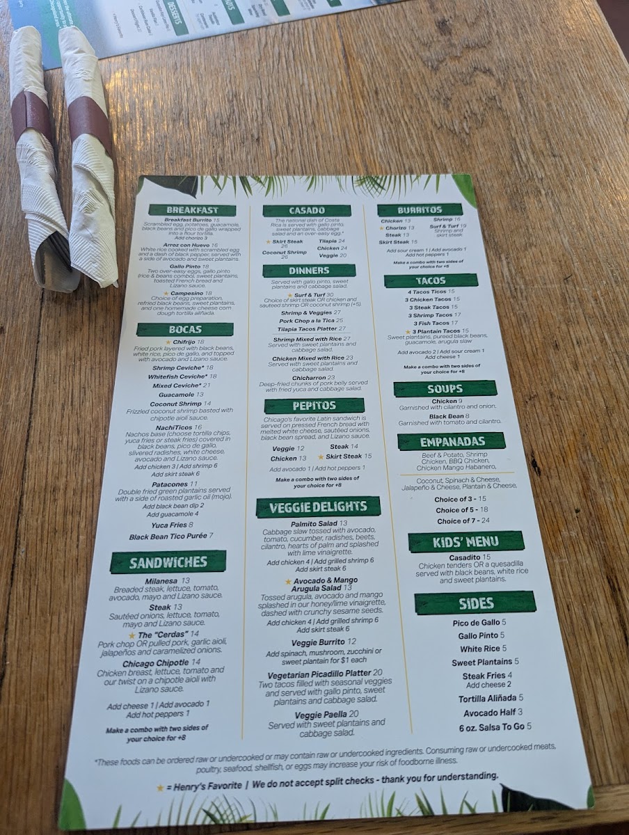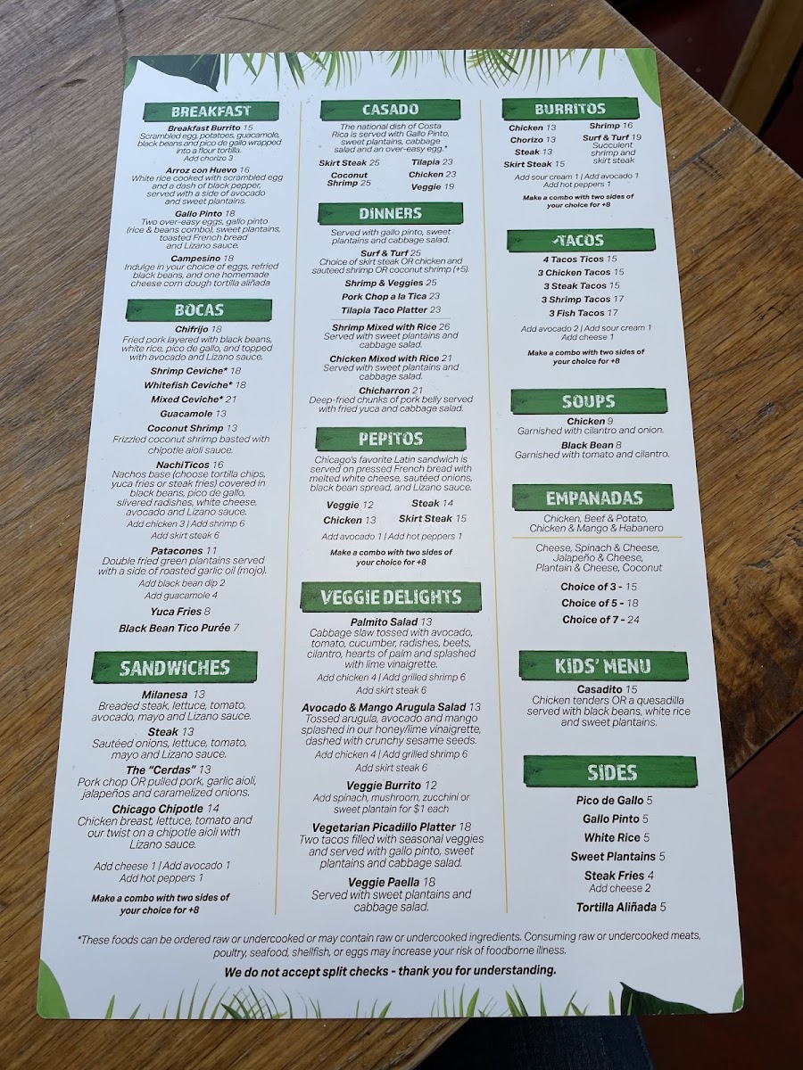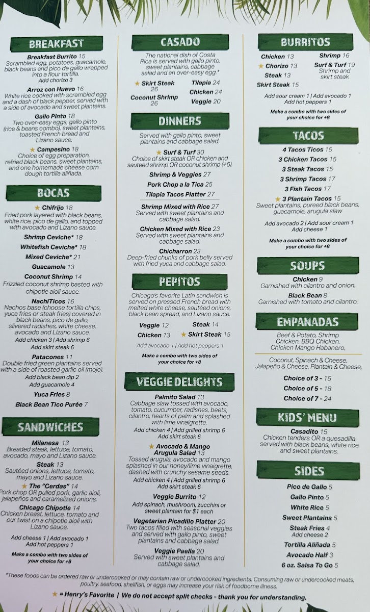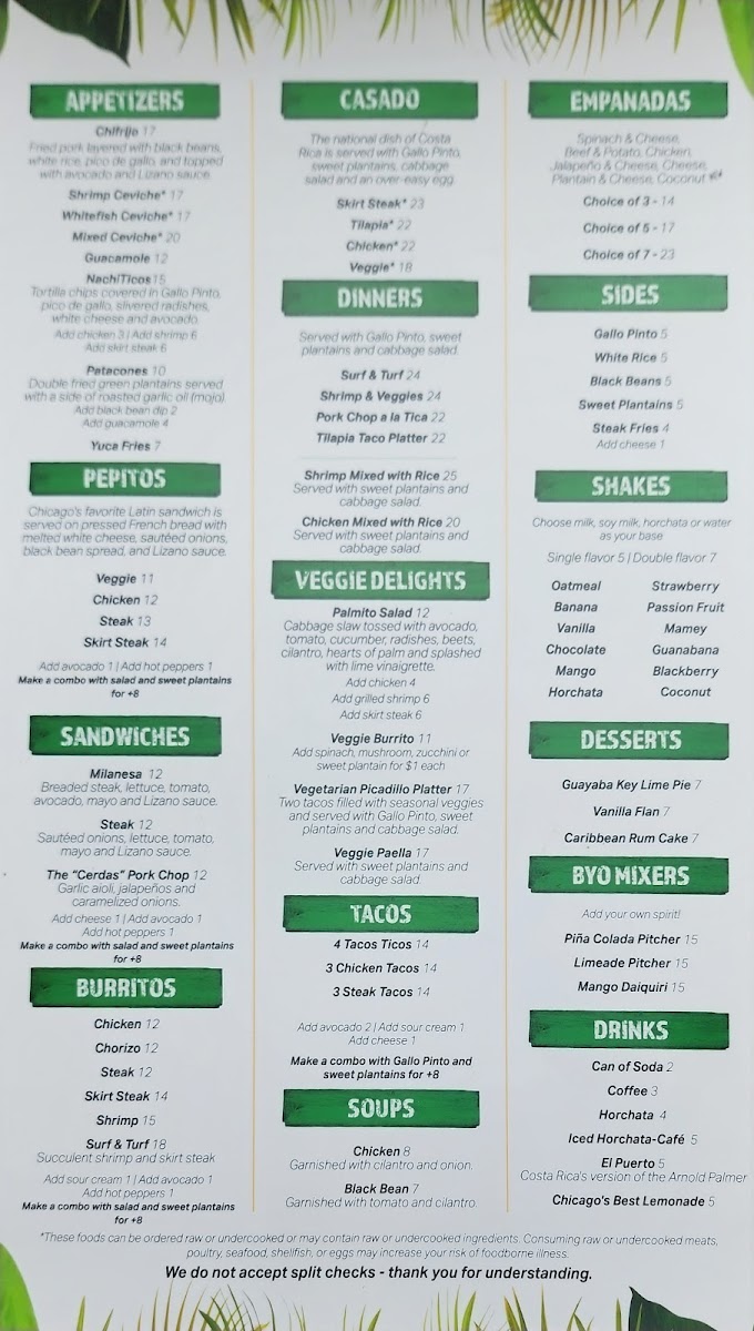 At Irazu Costa Rican Restaurant & Catering, the menu brings the vibrant flavors of Costa Rica straight to Chicago. Whether you're craving a hearty Casado, a flavorful ceviche, or the iconic Arroz con Pollo, every dish is crafted with care and authenticity. You'll find a variety of mouthwatering options that blend fresh ingredients with traditional spices, offering a perfect balance of bold and comforting flavors. From the sizzling grilled meats to the rich, comforting soups, each plate tells a story of Costa Rican heritage. Paired with a refreshing tropical drink or one of their signature cocktails, a meal at Irazu is a celebration of taste. The Irazu Costa Rican Restaurant & Catering Menu reflects the warmth and hospitality of Costa Rica, making it the perfect spot for a casual meal or special occasion.